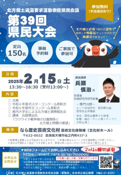 北方領土返還要求運動奈良県民会議 第39回県民大会のご案内 無料