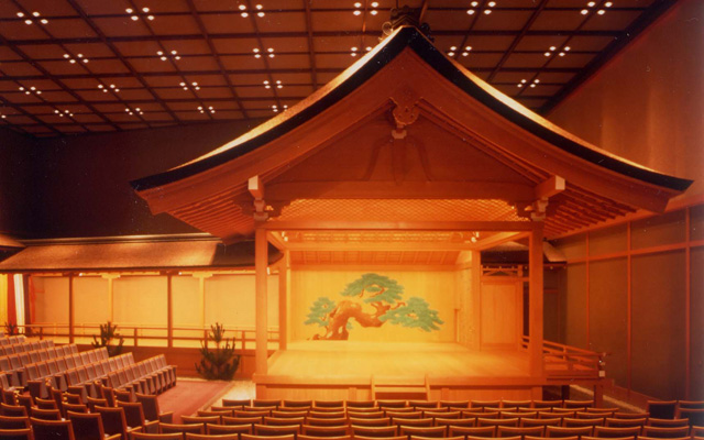 - 能楽ホール能舞台は、能舞台の形式がほぼ確立された室町時代の様式を再現することに努め、規模・設備ともに充分な能楽ホールとして、室町時代の優雅な雰囲気を蘇らせています。