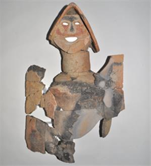 茅原大墓古墳出土盾持人埴輪(所在:桜井市立埋蔵文化財センター) ちはらおおはかこふんしゅつどたてもちびとはにわ |