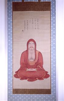 足利義教。室町幕府6代将軍で達磨寺復興に関与しています。賛には聖徳太子と達磨大師が出会い、読み交わしたとされる歌がそれぞれ記されています。