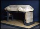 埋葬施設は竪穴式石室で、石室内には長持形石棺が納められていました。埋葬施設は中・近世の改変の際、失われましたが、竪穴式石室の天井石1枚と、長持形石棺の蓋石などが発掘調査で見つかっています。これらの石材はいずれも兵庫県高砂市で産出される竜山石を使用しており、古墳の被葬者の実力の一端をうかがうことができます。