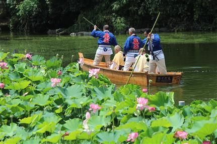 - 毎年7月7日午前に修験道の開祖である役行者(役小角)が産湯をつかったという捨篠池(蓮池)で、奥田の村人が蓮取り舟に乗って蓮を切り採ります。