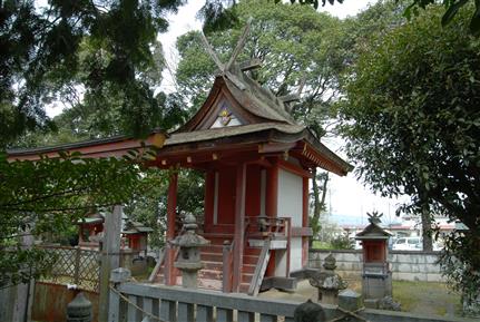 島の山古墳の西側に鎮座し、久波御魂命、天八千千姫を祀っています。「延喜式神名帳」に名を連ねる式内社です。本殿は一間社春日造り・屋根は檜皮葺で、春日大社摂社若宮神社から移築されたものとして昭和42年(1967年)に県指定有形文化財に指定されています。神宮寺である箕輪寺には、瀬戸焼の祖加藤景正が箕輪焼と呼ばれる陶器を作ったと伝えられています。