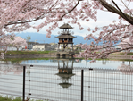 桜と唐古池と楼閣