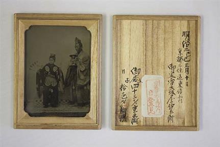 本資料は、昭和56年(1981年)4月、最後の伝承者の御子息(故人)より民俗博物館に寄贈を受けたもので、戦前まで実際に大和万歳を演じる際に使用されていたものです。『大和名所図会』など江戸時代に描かれた大和万歳の装束は、烏帽子、橘の紋の入った素襖が描かれることが多く、本資料も衿に若干手を加えて形態を少し変えていますが、ほぼ合致しています。また、京都御所へ正月に参勤していたという伝承を裏付ける幕末期の達状が残されています。明治2年、明治24年の紀年のある写真は、当時の姿を知る貴重な記録で、京都で撮影されたことがうかがえます。(総点数 48点)
