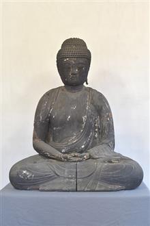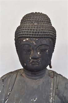 木造薬師如来坐像は境内の薬師堂に祀られています。かつては街道傍らに薬師堂があり、本像はその本尊と伝えられますが、一般的な薬師如来と異なり、定印を結ぶことや改造の痕跡が多い現況からは当初からの尊格を伝えているか不明です。本像の頭体幹部は前面と後面で表現が異なり、後面材の粗削りで粒が大きい螺髪や平面的な背中は前面材の温和な表現とは一線を画します。耳は左右で時代が異なり、右耳の耳廓が鎬立つ形は平安時代中期の像に通じます。後面材のみが広葉樹とみられる材を用いるのも時代の違いに起因するとみられ、古像の背面のみを生かして他の箇所を補ったものと考えられます(寄木造り)。後面材の内刳りや割首も補修の際に行われたものと思われます。表面には漆箔が施されています。制作年代は平安時代と考えられます。