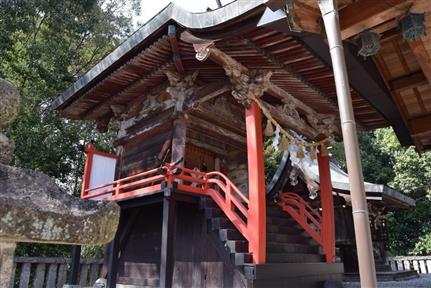 本殿は一間社隅木入春日造で、北側には摂社八幡神社本殿が所在します。いずれも近世初期の貴重な遺構として県の有形文化財(建造物)の指定を受けています。
