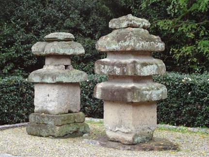 石塔は黄金塚(こがねづか)と呼ばれる本殿の南側に位置しています。本殿に向かって左側に多宝塔(高さ約190cm)、右側に層塔(訳180cm)があります。いずれも平安時代後期のもので、石材は凝灰岩製です。
