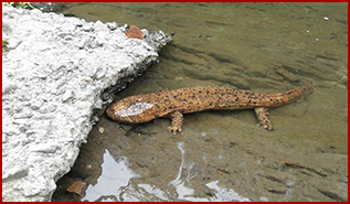 我が国のオオサンショウウオは、昭和26年(1951年)に「日本固有の動物で著名なもののうち、学術上貴重で、我が国の自然を記念するもの」として国の天然記念物に指定され、翌27年(1952年)には「天然記念物のうち世界的に又国家的に価値が高いもの」として特別天然記念物に指定されています。また、ワシントン条約では、絶滅危惧種として商業目的の国際取引が禁止されています。