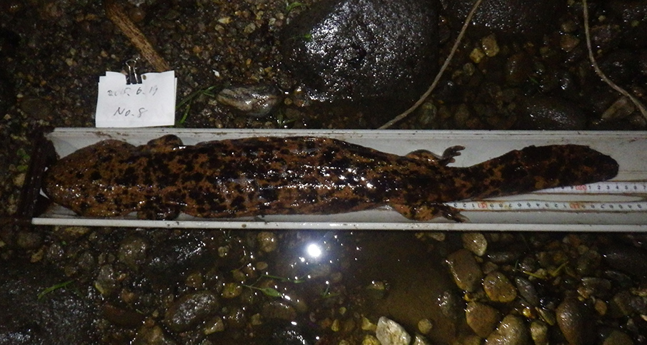 まず生息調査ですが、これは日没後、夜間に川に出かけて行き、オオサンショウウオを捕獲する調査です。