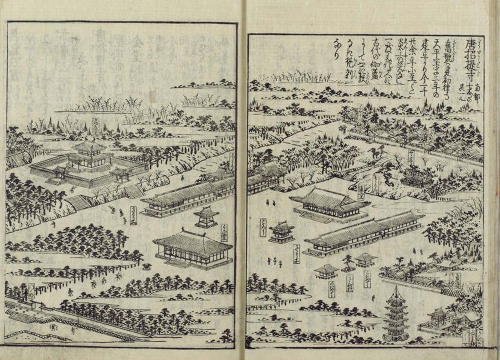 図会巻之三には唐招提寺の伽藍を俯瞰した絵が掲載されています。