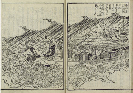 6度目にしてようやく我が国にたどり着いた時には、失明していました。名所図会には、渡海中の嵐のただ中、龍神とやりとりをする鑑真和上の姿が描かれています。