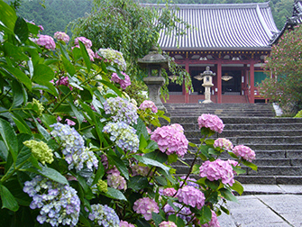 矢田寺は別名あじさい寺とも呼ばれています。境内には約60種10,000株のあじさいの花があり、6月から7月のシーズンには多くの観光客が訪れます。また、本堂の裏山には「矢田寺八十八ヶ所霊場」があり、四国八十八ヶ所霊場の各本尊を現した石仏を巡ることができます。