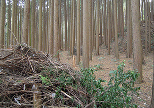 信貴山城址保全研究会の取組としては、まず、城址の整備活動があります。これは、登山道から松永屋敷跡を含めた城址一帯の散策道を整備し、間伐や雑木整理をすることによって、訪れる人が歩きやすいようにする活動です。発足以来、13回実施しており、地元の方々を中心に毎回約40人がボランティアスタッフとして活動をしています。城址を整備したことで、他団体の方々にもウォーキングイベントなどで城址を散策していただけるようになりました。