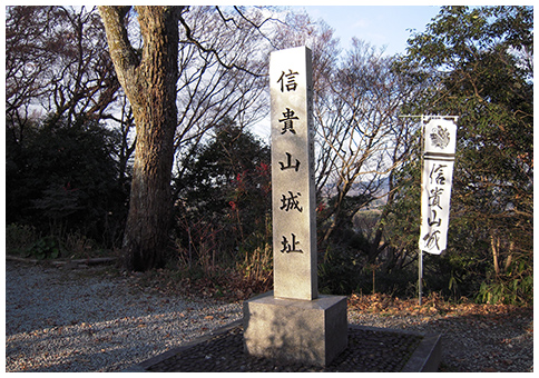 信貴山城は、かつて信貴山頂(雄岳)にあった山城です。松永久秀がここを居城としましたが、天正5年(1577年)に信長軍に包囲され久秀の自害とともに廃城となりました。現在でも堀・土塁・門跡などの城址が残されており、“兵(つわもの)どもが夢の跡”をより魅力あるものにする活動が行われています。