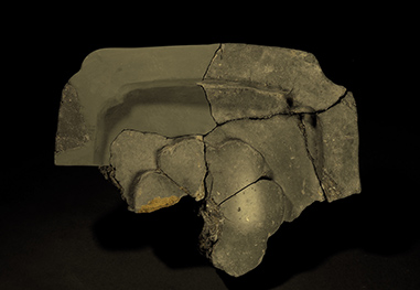 Uda Matsuyama Castle was built around the middle of the 14th century by the Akiyama clan, one of the three generals in Uda. Located on top of a 473-meter (roughly 1,551 feet)-high mountain, the castle’s remains reveal the existence of a castle tower. The castle was located in an ideal location overlooking the eastern part of the province, and together with Koriyama Castle and Takatori Castle, it played a key role in the control of Yamato Province under the Toyotomi administration. The lord of the castle changed frequently over a short period of time, but decorative ridge-end tiles bearing the family crest of the Taga clan have been excavated here, suggesting that the castle was extensively renovated during the reign of Taga Hidetane, who held the castle for eight years.