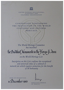 Inscription certificates for the three World Heritage Sites in Nara Prefecture