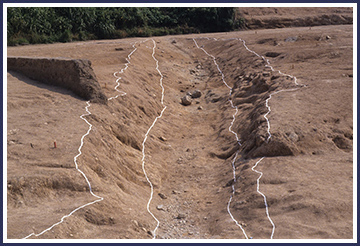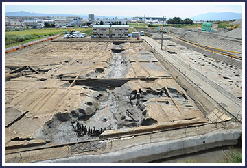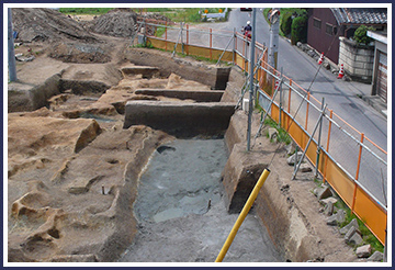 御所市鴨神遺跡の道路切り通しの遺構です。