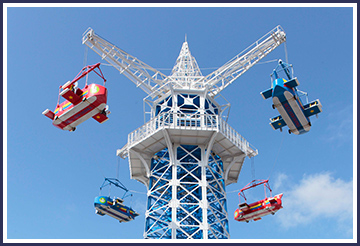 大正7年には、生駒聖天宝山寺への足として、生駒鋼索鉄道により鳥居前・宝山寺間に鋼索線が開業します。、日本最初のケーブルカーとして、大きな話題となりました。昭和4年には、大阪電気軌道(現近畿日本鉄道)により宝山寺・生駒山頂間も開業し、鳥居前から生駒山上が結ばれました。これが現在の近鉄生駒鋼索線であり、今でも宝山寺で乗り換えが必要なのは、このような経緯によるものです。なお、当時の大阪電気軌道は経営難で、宝山寺から借金をして開業に漕ぎ着けたという話が残っています。また、昭和4年には、生駒山上遊園地も開園し、当時としては珍しかったい飛行塔が、今も動いています。