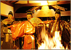매년 12월 15일에서 18일에 걸쳐 행해집니다. 내용은 덴가쿠, 부가쿠, 사루가쿠, 야마토마이 등 여러 갈래로 나뉘어져 있습니다. 헤이안시대 말기인 1136년에 관백인 후지와라노 다다미치 공이 오곡풍양을 기원하며 시작한 것으로 전해지는데, 오늘날까지 계속해서 이어지고 있습니다.