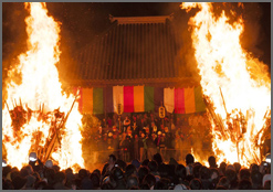 깃쇼소지 절(고세시 지하라)에서 개최되는 음력 정월 대보름의 불 축제 행사입니다.