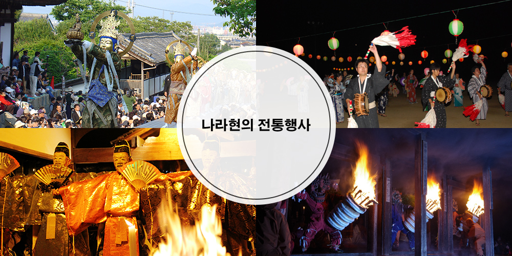 나라현 각 지역에서 개최되는 사계절의 전통행사를 소개합니다. 여러 시대를 거쳐 다양한 사람들의 삶에 밀착되어 전래되어 온 전통행사. 1000년 이상의 세월에 걸쳐 계승된 것으로 알려진 전통행사를 비롯해 기상천외한 축제로 불리는 행사도 있습니다.