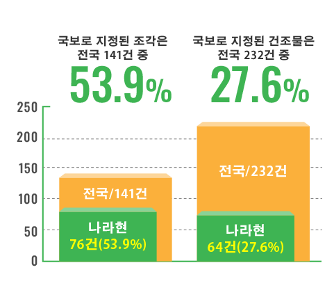 또한 국보 가운데 ‘조각’과 ‘건조물’의 건수에서는 양쪽 모두 전국 1위입니다.