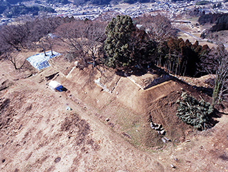우다마쓰야마성은 14세기 중엽에 우다 3장수 가운데 한 사람인 아키야마에 의해 축성되었습니다. 표고 473m의 산 정상에 위치한 산성으로, 유구를 통해 천수각이 있었다는 사실도 확인되었습니다. 일본 동부 세력을 견제하기에 최적인 장소에 있었으며 야마토코리야마성, 다카토리성과 함께 도요토미 정권하에서 야마토국 지배의 요충지였습니다. 단기간에 빈번한 성주의 교체가 이루어졌지만, 다가 일족의 가문이 새겨진 도깨비 기와가 발굴된 것으로 볼 때, 8년간 성주를 역임한 다가 히데타네 시절에 대규모 수리가 있었던 것으로 추정됩니다.
