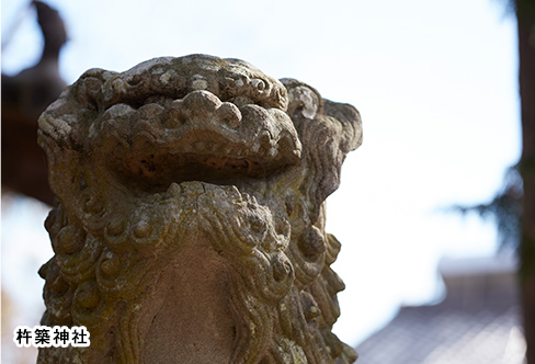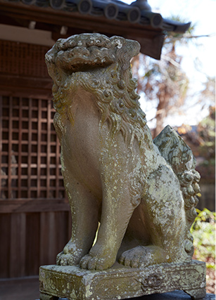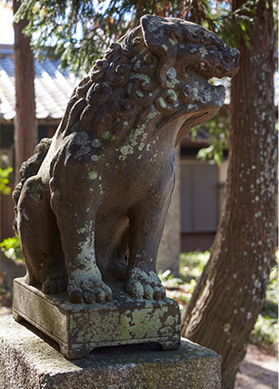 向かって右に口を開けた「獅子」、左に角をもって口を閉じた「狛犬」が配置されます。