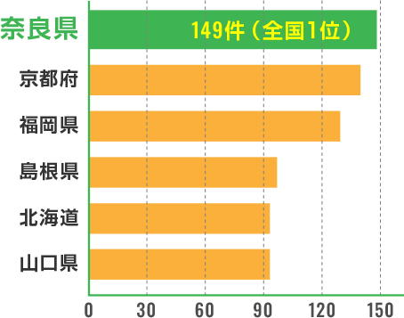 奈良県の国宝・重要文化財を合わせた件数は、1,545件にのぼり、全国3位です。
