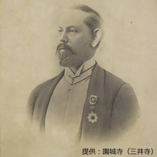 1886(明治19)年、法隆寺に1人の外国人を代表とする調査使節が現れました。彼らは明治政府の身分証明書を提示し、夢殿の厨子を開扉するよう要求しました。僧侶達は、「この厨子は200年間、開かれたことがない」「これを開くと地震などの災害が起こる」などと異を唱えます。しかし、ついに扉は開かれ、その中には木綿の布で包まれた6尺はあろうかという物体が安置されていました。その包みを解くと、かすかな微笑みをたたえた比類なき仏像が出現しました。この仏像が救世観音像であり、開扉を迫った外国人こそアーネスト・フェノロサ(1853-1908)だったのです。