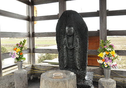 川西町には、聖徳太子が通勤に使ったという太子道が通っています。その太子道沿いにあるのが油掛地蔵です。太子が休憩をとって南無阿弥陀仏を唱えると地蔵が現れた、という言い伝えをもとに建てられたものです。この地蔵に油を掛けると、できものが治るとされていることから、「油掛地蔵」と呼ばれています。また、川西町保田にある富貴寺は、道詮(聖徳太子を尊崇した平安時代初期の僧)の創建によると伝えられていますが、この道詮は法隆寺夢殿を建てた人物です。このようなところにも、聖徳太子とのゆかりがあります。