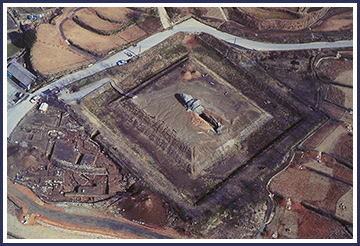 這是1975年石舞台古墳周邊的調查情况。透過整修前的照片,可以清楚了解到其為一座大型方墳。