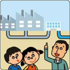 有害物質(ゆうがいぶっしつ)をそのまま下水道に流さないように、工場は有害物質(ゆうがいぶっしつ)を取り除く(のぞく)施設(しせつ)を取りつけています。