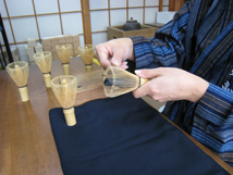 茶筌の糸かけは下編(したあみ)と上編(うわあみ)に分かれます。茶筌制作体験は下編された茶筌の上編から行っていただきます。