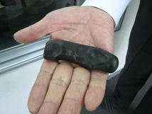 にぎり墨体験は職人によって円筒状に延ばされた墨をご自分の手のひらでにぎる体験です。