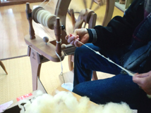 隣接するめえめえ牧場の羊毛を洗い、神野山の草木で染色、糸に紡いで手織りする全工程を学習するホームスパン講習会を開講しています。羊毛加工の全工程を学習できる施設は全国的にも少なく、県内はもちろん、周辺府県からの受講者も数多く来ていただいています。
