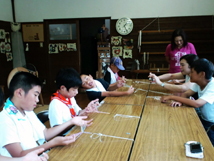 手で編むストラップの製作体験をしている様子です。他にもさまざまな体験内容がありますので是非ご利用ください。