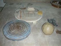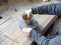 手回しろくろ、竹べら、こて、切糸、なめし皮を使って体験していただきます。