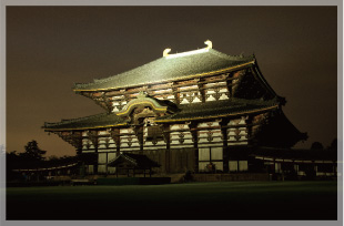 奈良のシンボルともいえるお寺で、1998年に世界遺産に登録されました。東大寺の大仏殿は世界最大級の木造建築物です。ライトアップされた南大門の金剛力士像は昼と違った迫力があります。