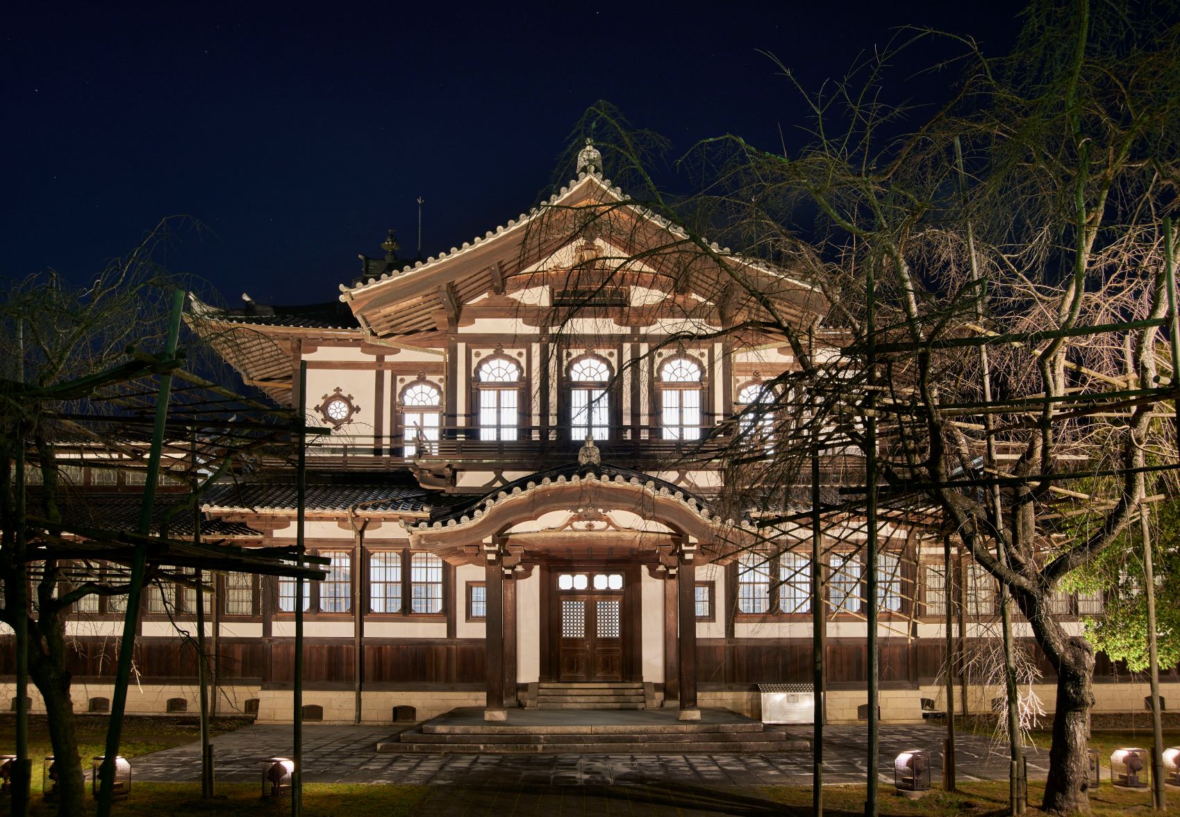 東棟2階からは旧知事公舎のライトアップを見ることもできます。