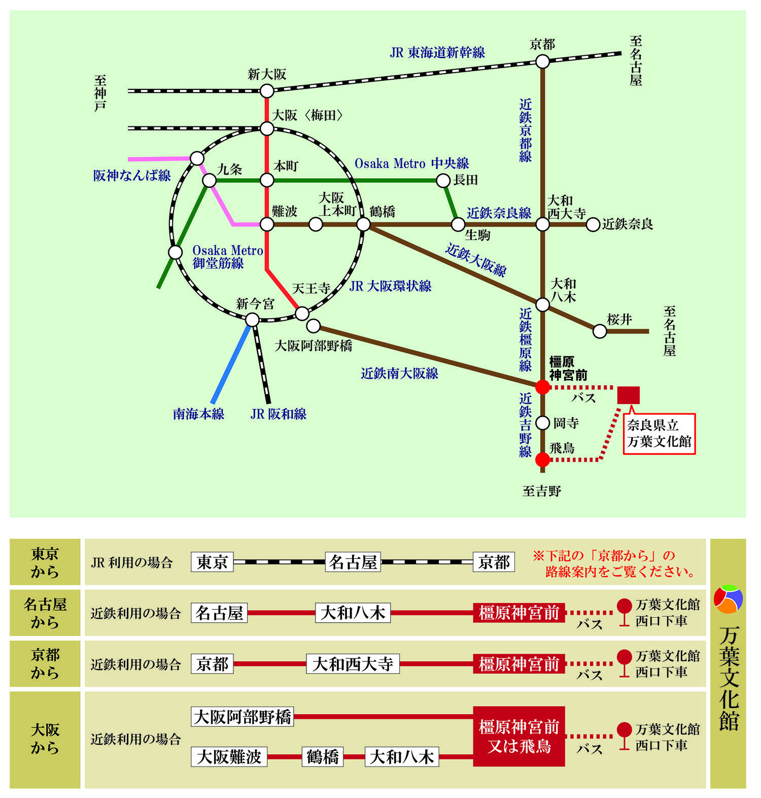 トップページ > 観光・文化・スポーツ > 文化財・歴史 > 歴史・博物館 > 奈良県立万葉文化館 > 交通アクセス > 電車でのアクセス|交通アクセス