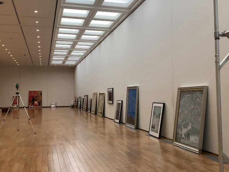 2日間の展示作業は、時間との勝負です。作業をスムーズに進めるために、展示作業に入るまでに学芸員は展示室の広さ・作品の寸法・動線・作品の見せ方などたくさんのことを考えて、詳細な展示レイアウトを図面上で完成させておく必要があります。