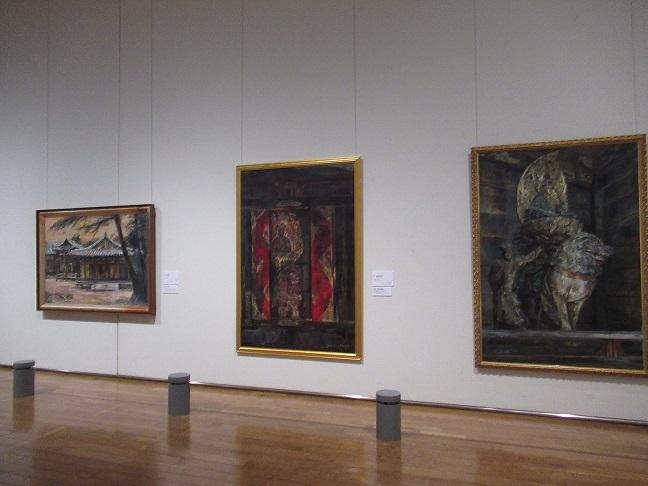 万葉文化館にはその頃の作品で、奈良の寺社や仏像を描いた作品を30点ほど収蔵しています。いくえにも油絵具を塗り重ねることによって、寺院の御堂内に差し込む光の加減や陰影がたくみに表現されています。それが作品の静かで厳かな雰囲気を生み出しています。