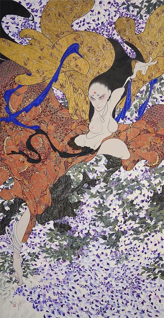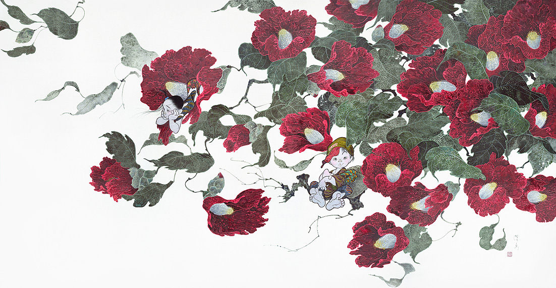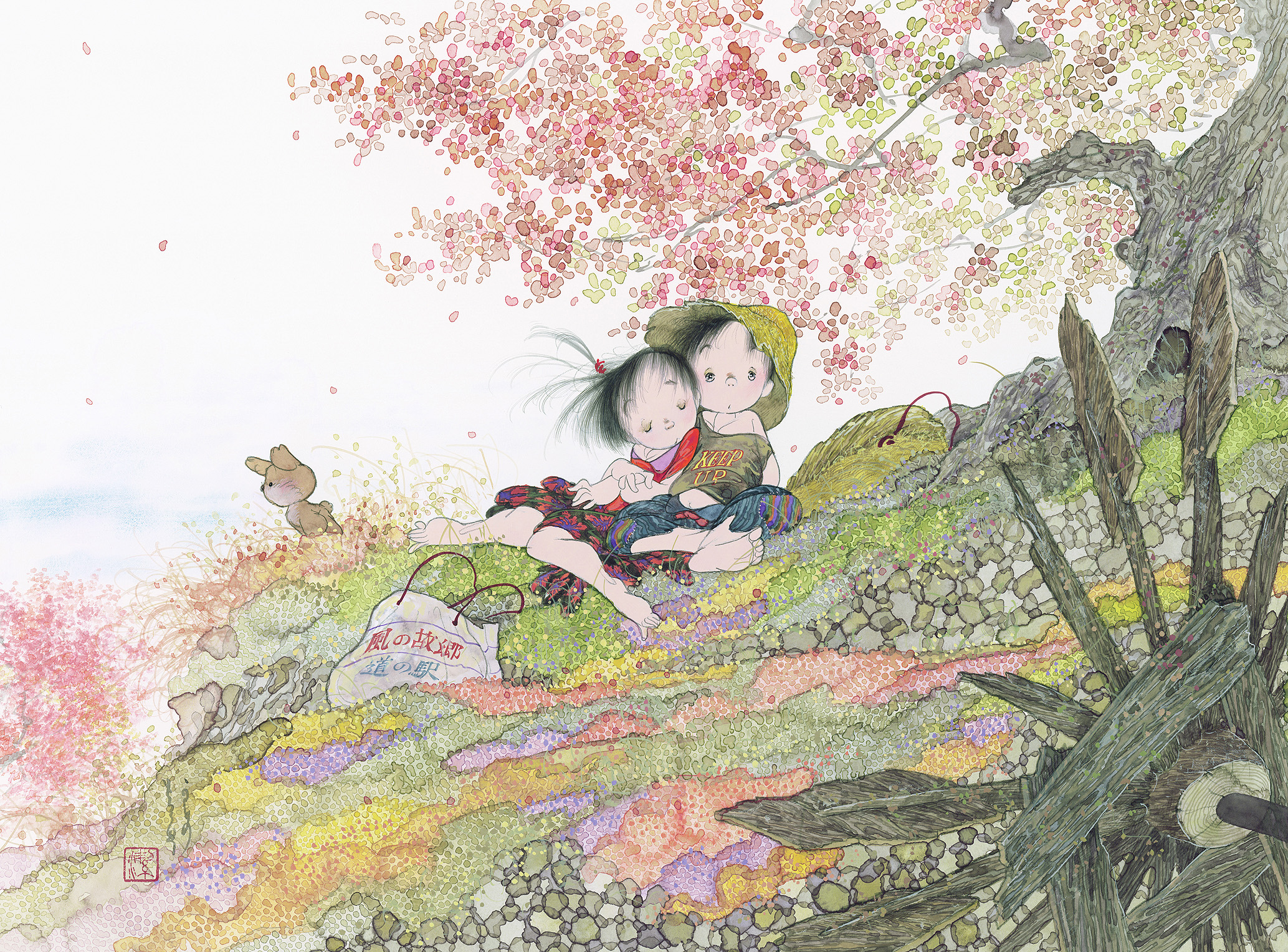 鮮やかで温かみのある色彩で子供や女性の姿や故郷の情景を描き続けてきた中島潔は、優しい風が吹き抜けるようなその作風から「風の画家」と評されています。本展覧会では、中島潔のこれまでの軌跡を辿りつつ、東日本大震災を経て制作された新作「新しい風」シリーズ、京都六道珍皇寺奉納の「地獄心音図」とこの世の理想郷を描いた「心音」からなる連作「心音図」など近年の作品を展示します。また、特別に本展に合わせて描き下ろされた新作「万葉舞花」を初披露いたします。常に変化を求め新たな境地で描かれる中島潔の世界を、是非お楽しみください。