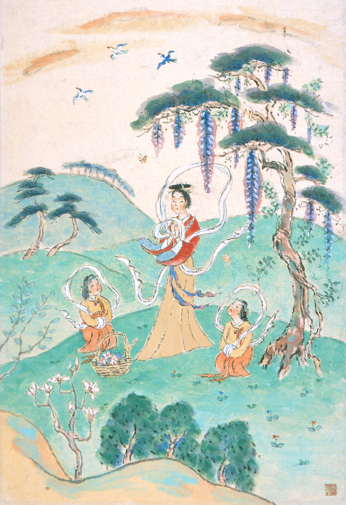 大亦観風は明治27年(1894年)和歌山市に生まれ、郷里で洋画を学び、画家を志して上京、その後日本画に転向して独自の画風を切り拓きました。また、観風は自らも歌を詠み、『万葉集』をこよなく愛した歌人でもありました。昭和15年(1940年)に生まれた、画・書一体の『万葉集画撰』は、画家であり歌人であった観風ならではの作品であると言えます。