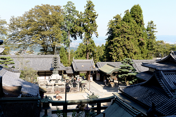 「常楽殿」の前に立って振り向くと、本堂や聖天堂が建ち並ぶ境内の様子を見渡せる。