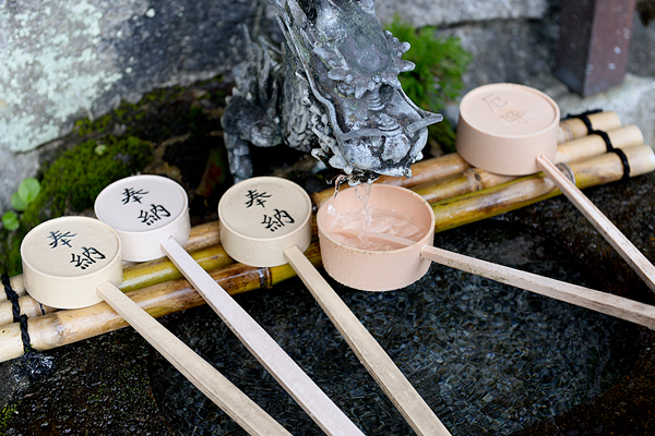 山歩きとも言える宝山寺の参拝に疲れたら、こちらの「延命水」をいただこう。