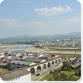 松倉重政は、関ヶ原の合戦での功績が認められ、一万石の大名として慶長13年(1608年)に二見城に入城した。そして五條新町をつくったのだが、その際、まちに商人が集まりやすいようにと、「諸役免許」の政策をとった。つまり、税金を免除する特権を与えることで、まちに集まった商人が定住するように図ったのだ。この政策は見事に成功し、その後の五條新町の発展の礎となった。