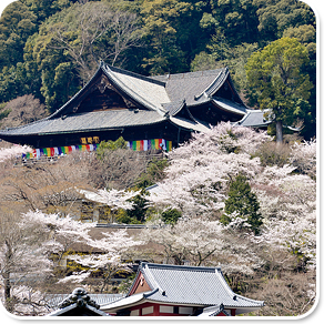 「歓喜院」は、子弟教育を含め様々な目的に使われる昭和寮を併設している。4月上旬~中旬には初瀬桜、夏にはキョウチクトウの花を見ることができる。